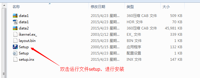 6、解壓后,如下圖,雙擊安裝文件“setup”,進行安裝。