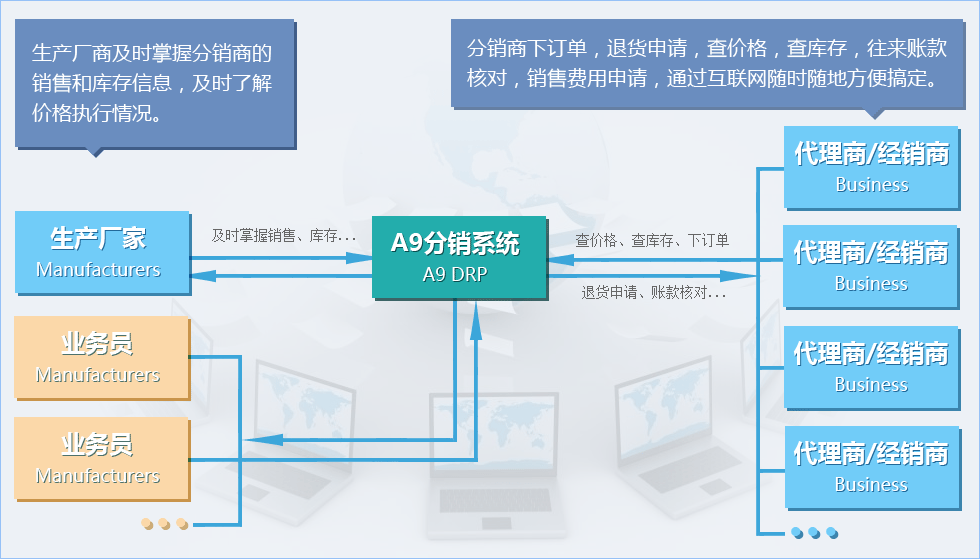 借助互聯(lián)網(wǎng)科技,A9企業(yè)分銷管理系統(tǒng)快速幫助企業(yè),構(gòu)建基于互聯(lián)網(wǎng)的企業(yè)分銷網(wǎng)絡(luò)。