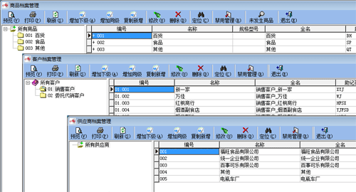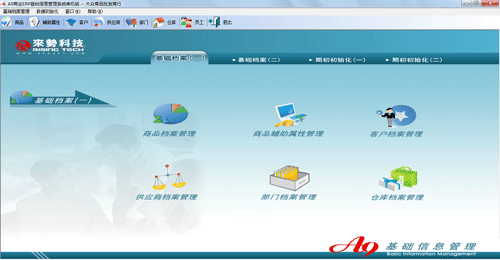 基礎信息管理系統是各項基本檔案管理、初始化數據管理的中心,檔案信息包括物料檔案、商品檔案、客戶檔案、供應商檔案、倉庫檔案、經辦人檔案等十一項檔案信息,初始化數據管理包括期初庫存初始化、期初應付賬款初始化、期初應收賬款初始化等八項初始化信息。