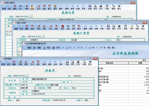 采購管理系統對企業采購業務進行全面控制。本系統主要包括采購訂單管理、采購入庫管理、采購結算管理及統計報表等模塊,能自動處理應付賬款、庫存數量及金額,實時提供各類分析數據,包括應付賬款明細賬,暫估入庫未結明細表等。系統能對最后進價進行實時提醒,提供完善的商品批次、保質期采集功能,并可以根據需要自動生成批次號。